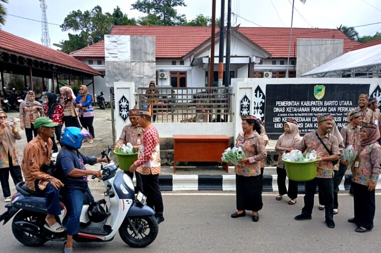 MUARA TEWEH, NK.com – Dinas Ketahanan Pangan dan Perikanan Kabupaten Barito Utara melalui Teras Pangan B2SA menggelar kegiatan pembagian sayuran hidroponik gratis kepada masyarakat yang melintas didepan Dinas KPP di Jalan Yetrosinseng Muara Teweh, Kamis (26/2/2026) pagi.